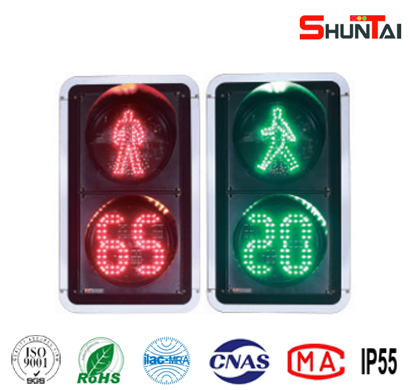 人行信號燈出光面直徑有300mm和400mm,光源采用進口超高亮度LED,具有壽命長、功耗低、外觀新穎等特點。